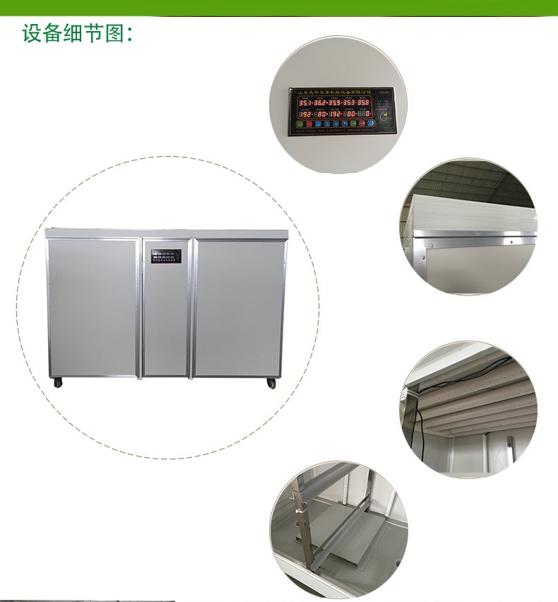產(chǎn)品型號(hào):YJ-800A (該機(jī)器有 一機(jī)單控和一機(jī)雙控 兩個(gè)型號(hào)) 電源電壓(V):220 總功率(KW):2.0 總?cè)萘?KG):1600 日產(chǎn)量(KG):400 育芽箱:48個(gè)(里外雙排,如下圖) 整機(jī)重量(KG):500